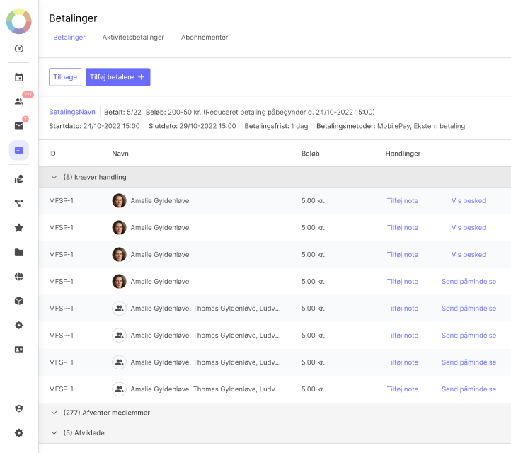 Automatiske opkrævninger af kontingenter og betalinger via MobilePay
